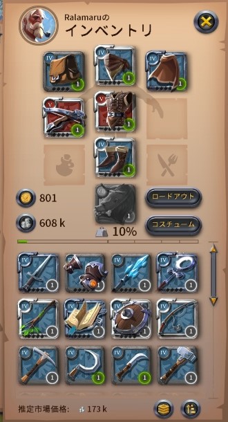 装備にはレベルが存在します。アルビオンオンラインでは、8段階のレベルとなってます。このレベルのことをティアと呼んでます。チュートリアルが終了したときには、ティア2の装備を身につけているはずです。ティア2は「見習い」と呼ばれています。最初に目指すのはティア3(熟練)の装備になると思います。