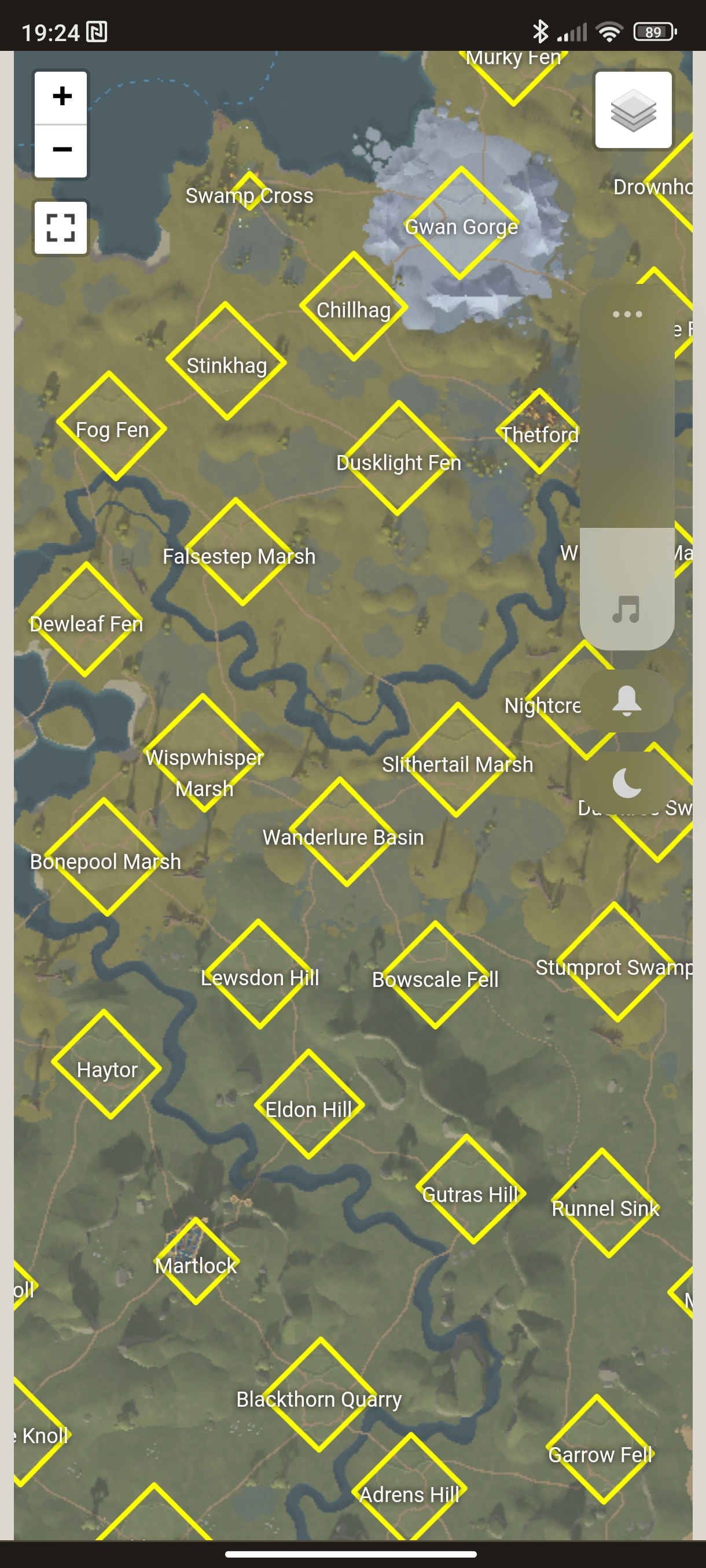下のエリアの切り出しです。ここの左上半分辺りが沼地エリア、Thetfordを中心としたエリアです。左真ん中ぐらいがMartlockですね。