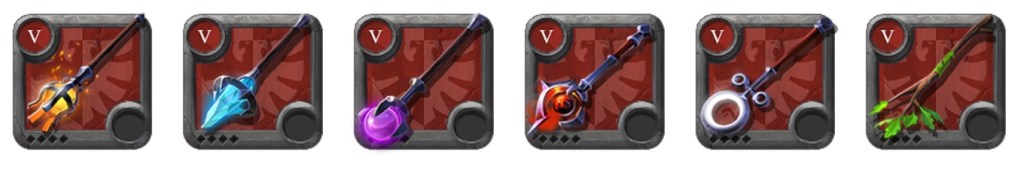 • 長距離 :杖つまり魔法ですね。魔法にはヒール系、火魔法系、氷魔法系がわかりやすい武器です。わかりにくいのは、呪いとアーケインですかね?使ってみましたがよくわからない。パーティー戦とかだと有用なのかな?